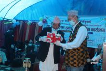 आ.व. २०७७।७८ को नीति, कार्यक्रम र बजेट तथा स्थानीय कानुन संग्रह सार्वजिनिकरण गर्नु हुँदै मा.संविधानसभा सदस्य श्री भूपेन्द्र थेवे ज्यू र गाँउपालिका अध्यक्ष श्री टिका राम गुरुङ ज्यू ।