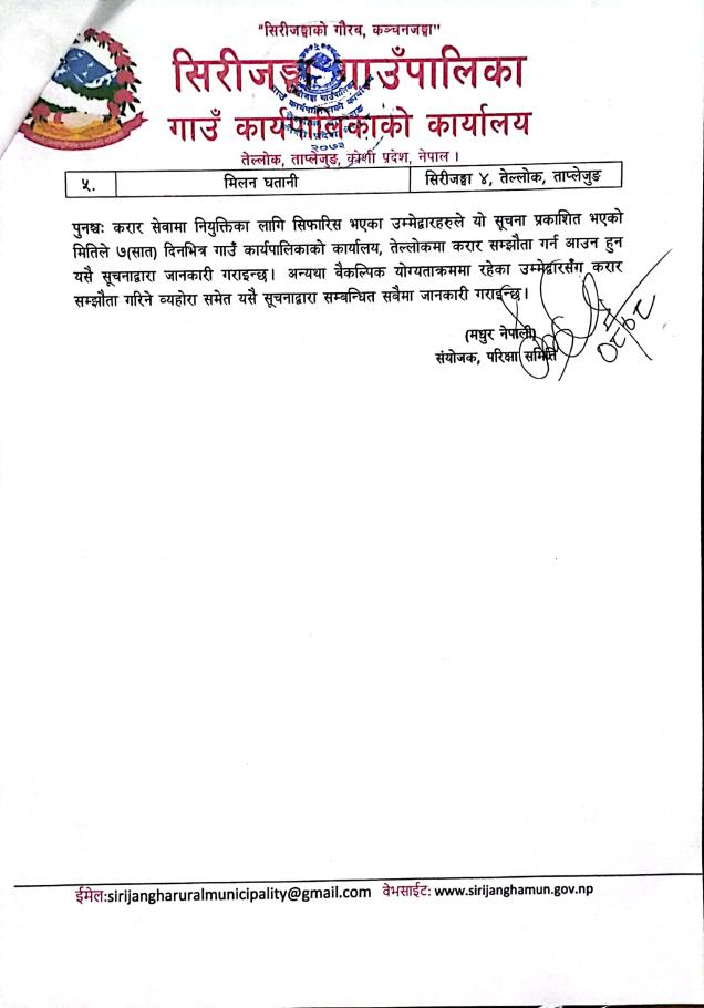 सेवा करारमा कर्मचारी पदपूर्ती गर्ने सम्बन्धी सूचना ।