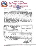 सिरीजङ्घा गाउँपालिका स्थित वडा नम्बर ३ सिकैचाको वडा कार्यालय भवन निर्माण र प्राथमिक स्वास्थ्य केन्द्र तेल्लोकका लागी डिजिटल एक्स-रे मेशिन खरिदका लागि ठेक्का आव्हान गरिएको सूचना