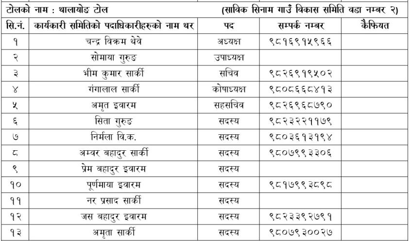 थालायोङ टोल विकास संस्था सिरीजङ्घा १ सिनाम (साविक सिनाम गाउँ विकास समिति वडा नं. २) मा पर्दछ ।