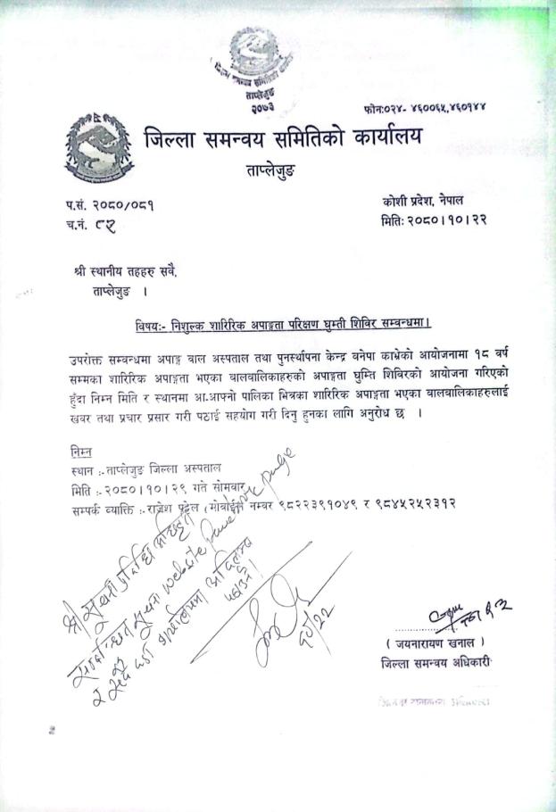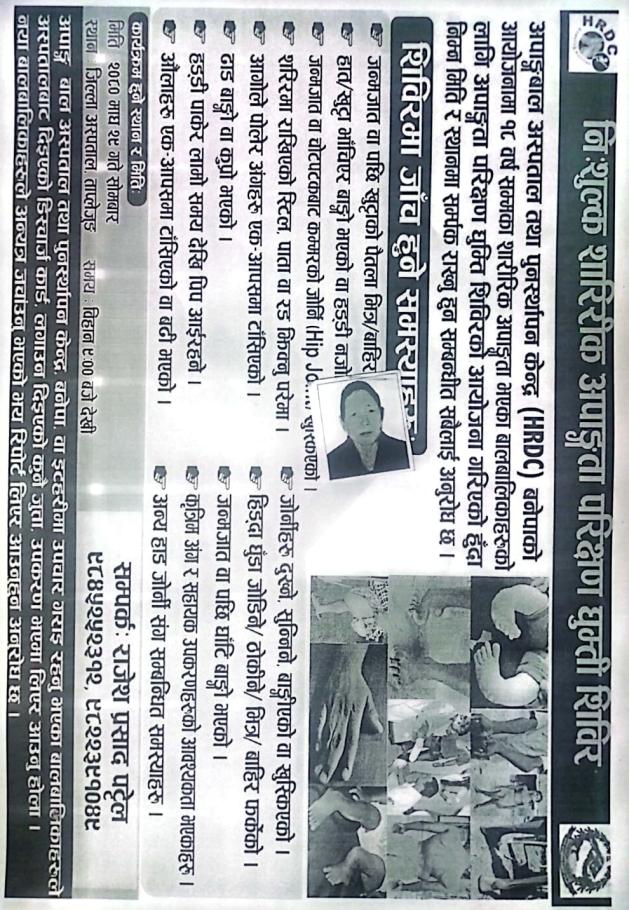 » निशुल्क शारिरिक अपङ्गता घुम्ती शिविर सम्बन्धमा ।