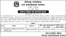 » बोलपत्र स्वीकृत गर्ने आशयको सूचना (SRM/2075/76/01 Supply and Delivery of Motorcycle)