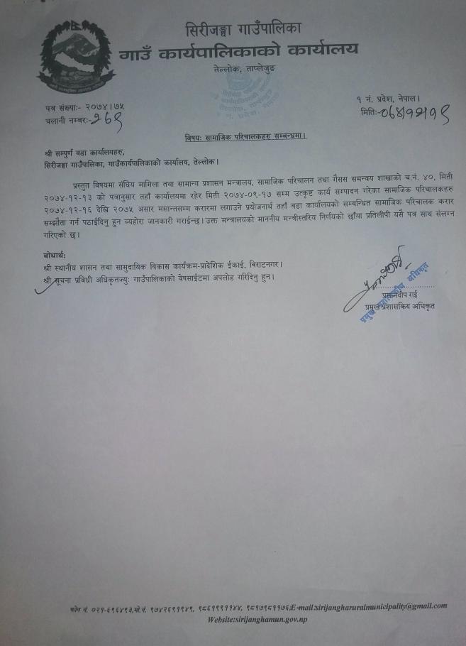 व्यवसाय तथा कृषि फर्म दर्ता तथा नविकरण गर्न वडा सचिवलाई अधिकार प्रत्यायोजन गरिएको सम्बन्धमा ।