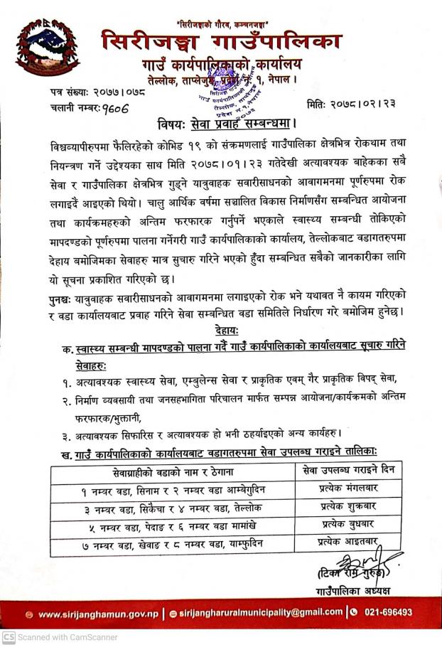 सिरीजङ्घा गाउँपालिका वडा नं. ३ सिकैचा स्वास्थ्य चौकीका लागि सेवा करारमा कार्यालय सहयोगी पदपूर्ति गर्ने सम्बन्धी सूचना ।
