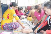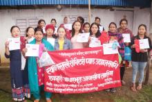 स्थानीयस्तरमै सेनिटरी प्याड उत्पादन सम्बन्धी आधारभूत आवासीय तालिमको झलकहरू।