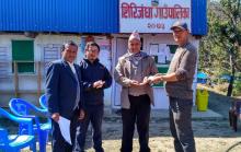 १ नं. वडा, सिनामका आगलागी पिडितलाई गाउँपालिकाका अध्यक्ष टिका राम गुरुङबाट राहत प्रदान गरिदै।