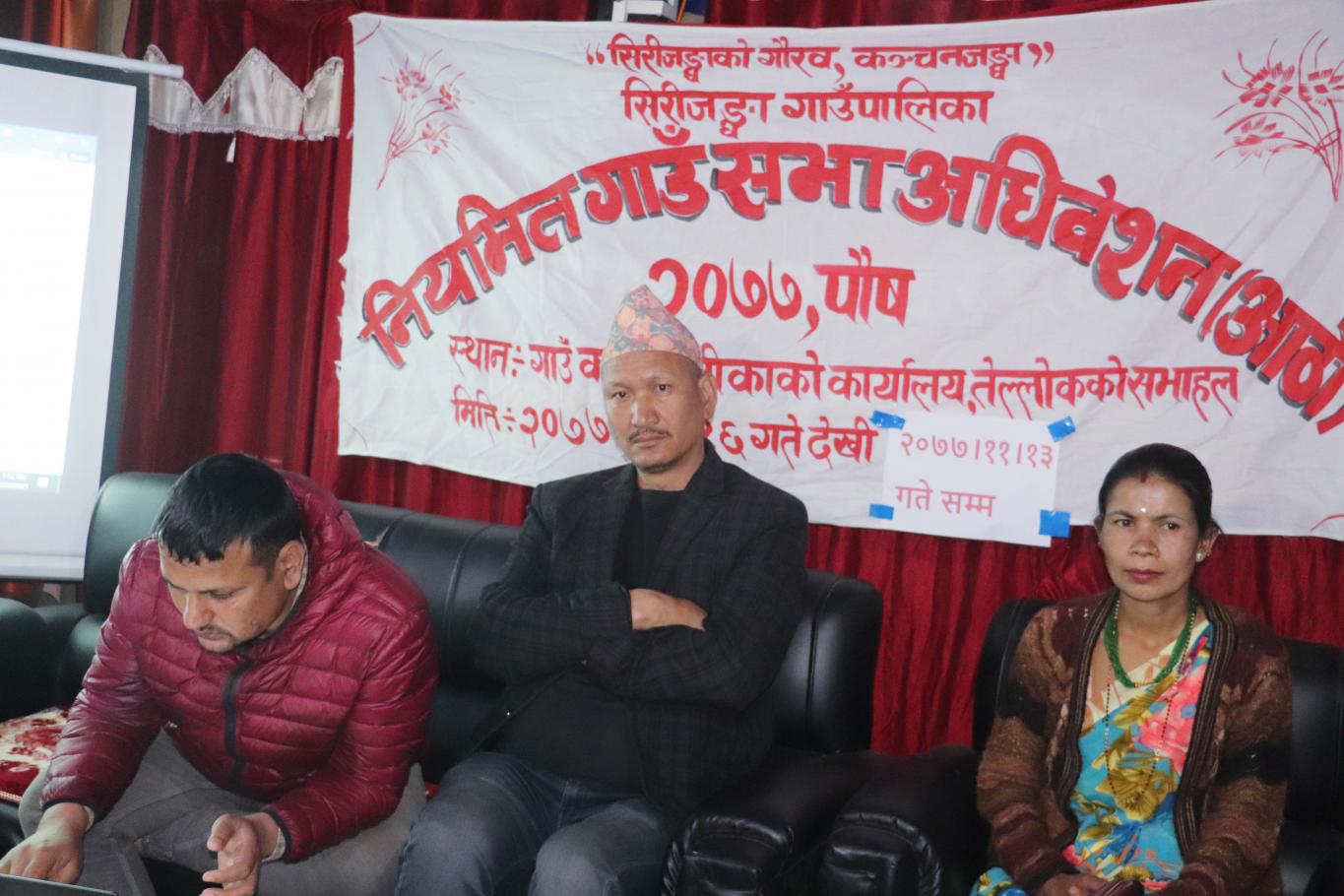 मिति २०७७ साल पौष १६ गतेदेखी शुरु भएको सिरीजङ्घा गाउँपालिकाको नियमित गाउँ सभा अधिवेशन (आठौं) आज मिति )२०७७ साल फागुन १२ गतेबाट सम्पन्न भएको छ। चालू आर्थिक वर्ष २०७७/०७८ को आयोजना तथा कार्यक्रममा केही संशोधन गर्दै गाउँ सभा अधिवेशन सम्पन्न भएको छ । यो गाउँ सभा अधिवेशनले गरेका केही महत्वपुर्ण निर्णयहरु तपसिल बमोजिम रहेको छ।