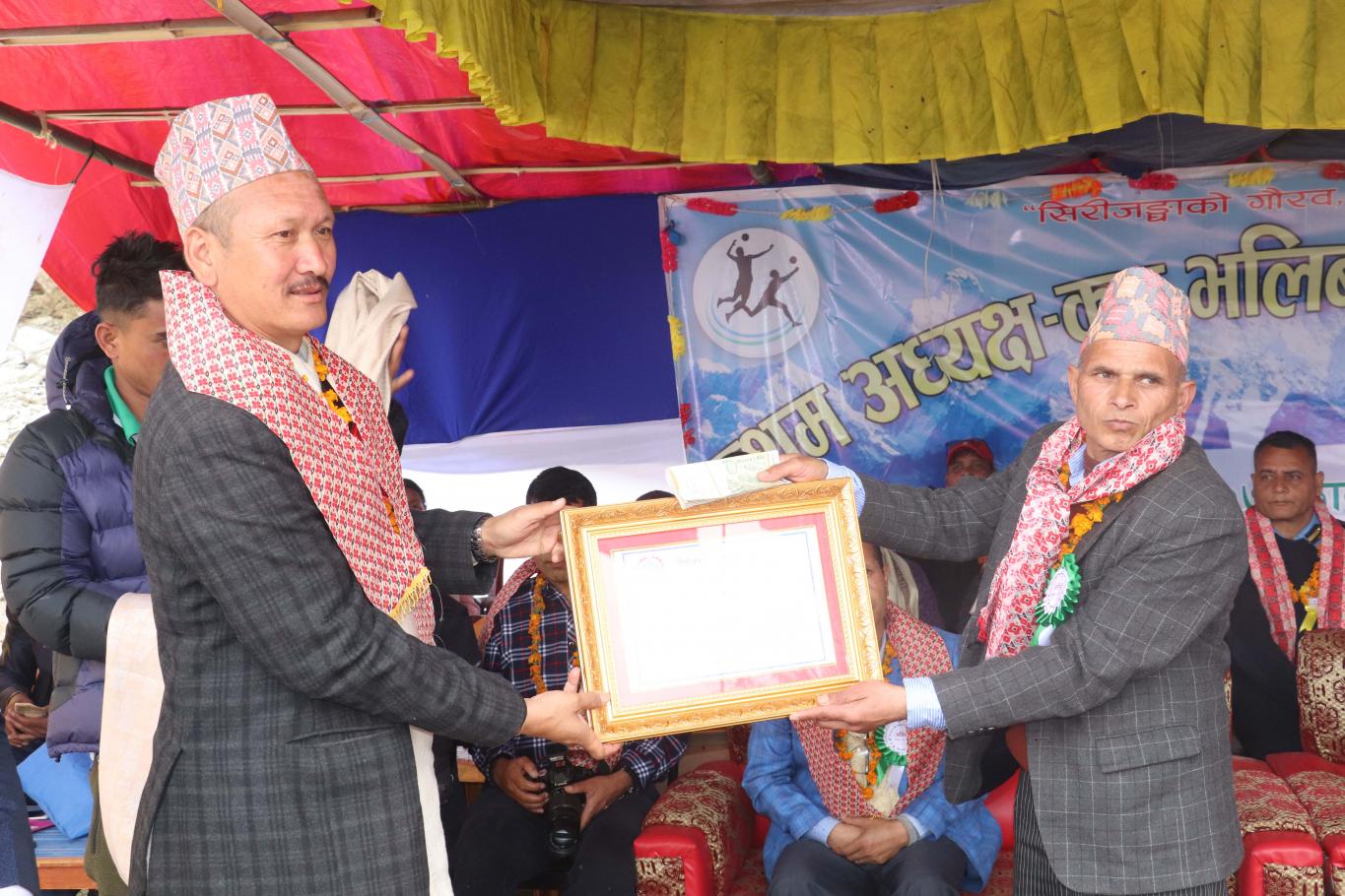 सिरीजङ्घा गाउँपालिकाको स्थापना दिवस (५औं) को सु-अवसरमा आयोजित प्रथम अध्यक्ष-कप भलिबल प्रतियोगिता, २०७७ सम्पन्न भएको छ । २ नम्बर वडा, आम्बेगुदिनले उक्त प्रतियोगिताको उपाधी (नगद ५०,०००।०० राशी, खेलाडीले कन्चनगङ्घा हिमाल बोकेको ५३ तोला चादीको ट्रफी, मेडल, प्रमाणपत्र) चुम्न सफल भएको छ भने ३ नम्बर वडा, सिकैचा उक्त प्रतियोगिताको उपविजेताको उपाधी (नगद ३०,०००।००, ट्रफी, मेडल र प्रमाणपत्र) चुमेको छ । त्यस्तै यो खेल प्रतियोगितामा ६ नम्बर वडा, मामाङ्खे र ४ नम्बर वडा, तेल्लोकले क्रमशः तेस्रो र चौथो स्थान हासिल गर्दै क्रमशः नगद २०,०००।०० र १०,०००।०० रकम, ट्रफी, मेडल र प्रमाणपत्रले पुरस्कृत भएका छन् । प्